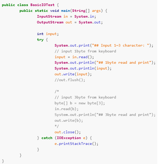 - 스트림은 입출력 장치와 자바 프로그램간의 연결 통로임
