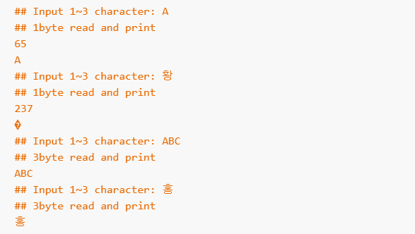- 세글자 까지 입력 내용이 출력되며 한글의 경우에도 정상 출력됨(UTF-8은 3바이트)