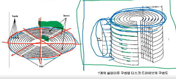 - 디스크 용량 = 실린더 수 x 실린더 용량