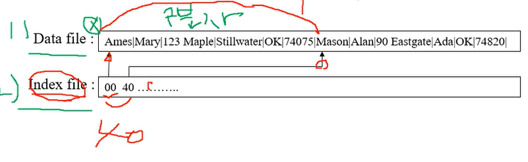 - 레코드의 시작 주소(바이트 오프셋:offset)를 인덱스를 사용