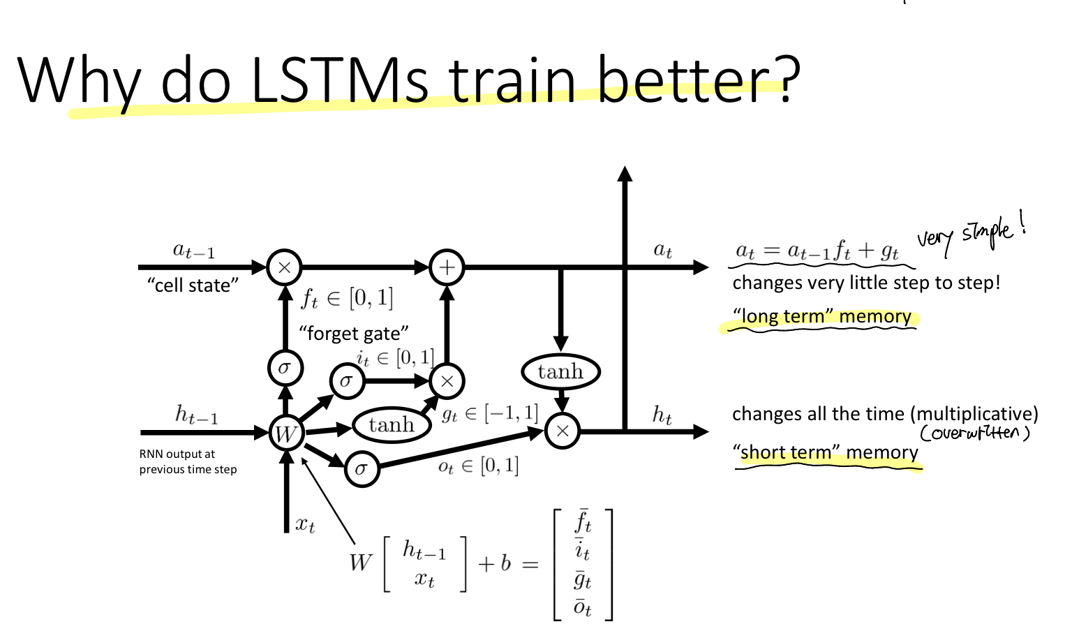 이때 next Cell_state를 보면 비선형이 가해지지 않는 것을 알 수 있다. 이는 backward pass 과정에서 derivative를 구하는 것이 편해진다고 볼 수 있다. 즉, 이전 레이어의 활성화 값이 그대로 사용한다고 볼 수 있다.