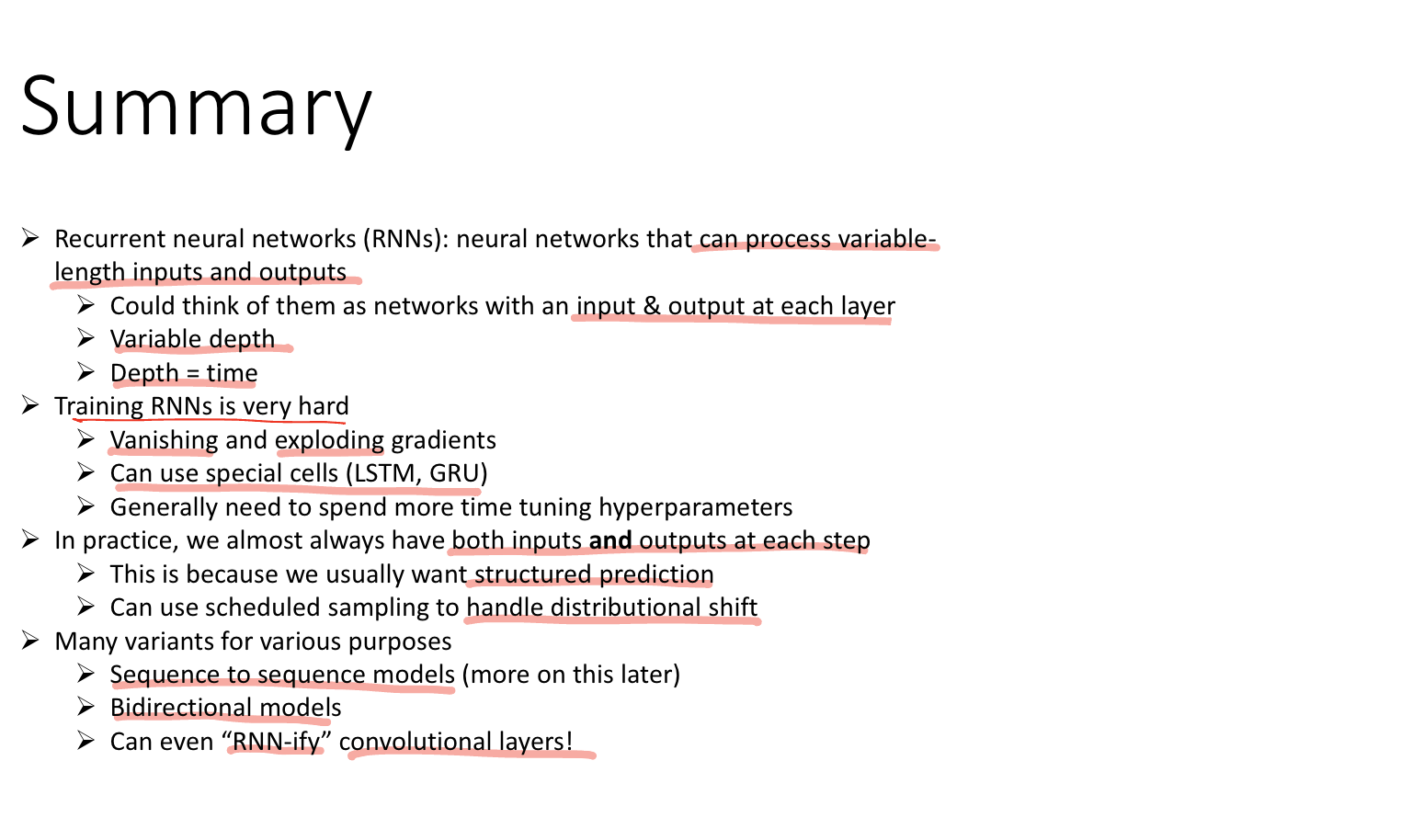 하지만 RNN은 vanishing/exploding gradient 문제가 있다. 이 문제를 해결하기 위한 모델로는 LSTM, GRU 등이 있다.