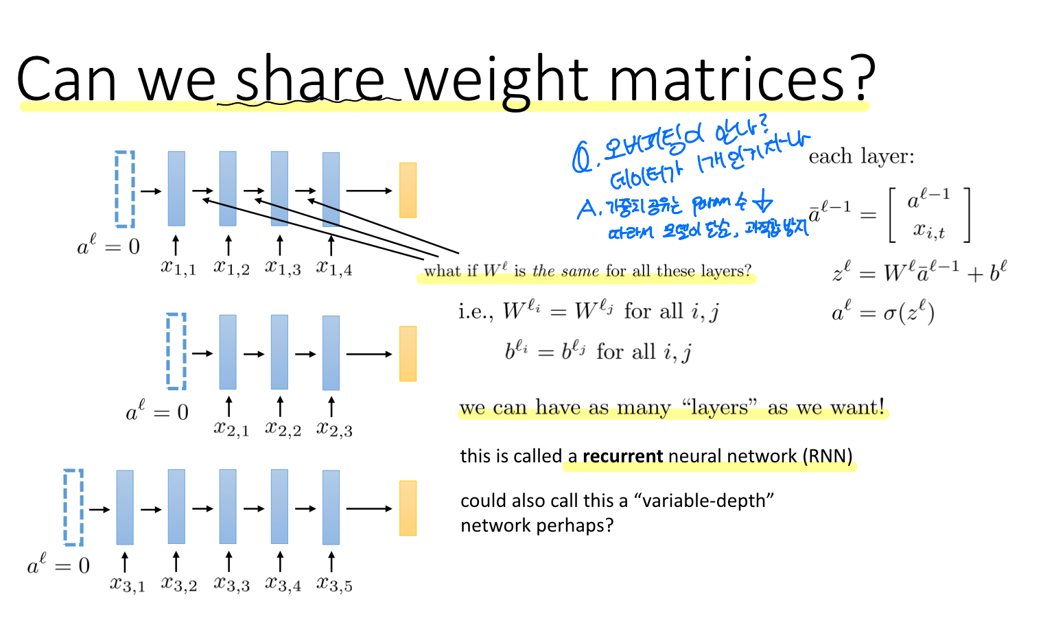 가중치 행렬의 수가 시퀀스의 길이에 따라 증가한다는 문제를 해결하기 위한 아이디어가 있다.