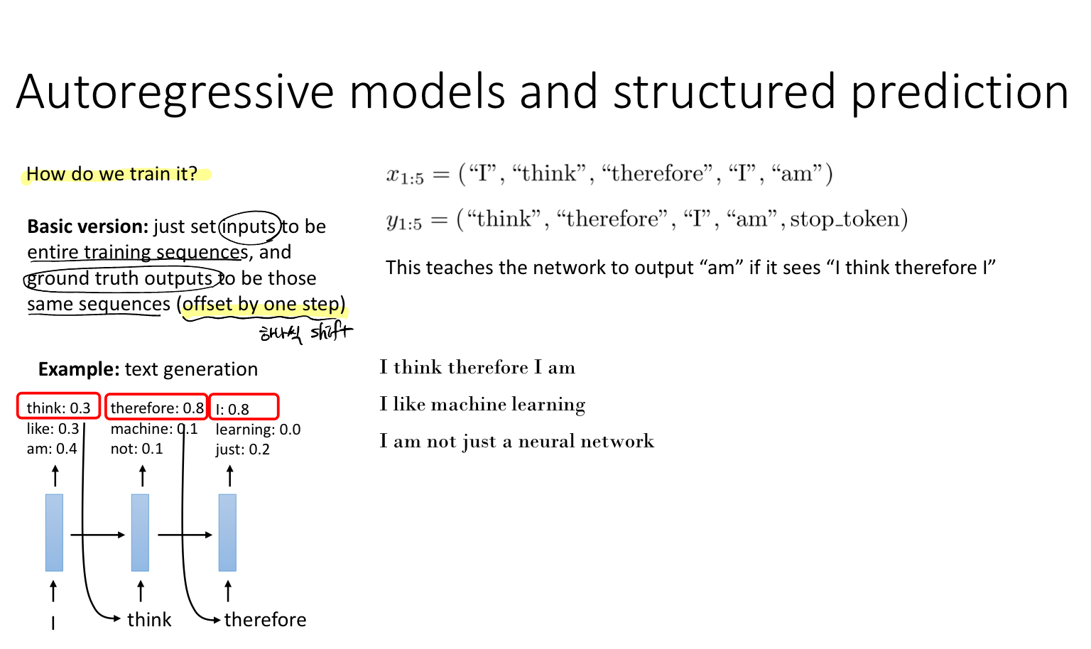그런 관점에서 보니 헤드라인이 왜 Autoregressive models and structured prediction인지 알겠다. 단어 간의 시퀀스적 관계를 학습, 즉 연속적인 데이터 포인트 사이의 조건부 확률이다.