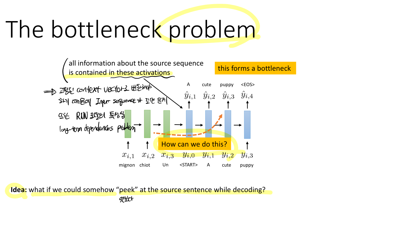 Solution: 디코딩할 때 입력 시퀀스를 peek 엿볼 수 있다면 어떨까?