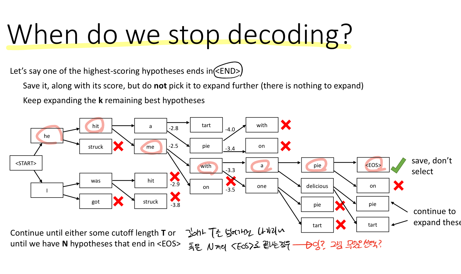 이 역시 EOS 토큰이 나오면 decoding을 멈춘다.
