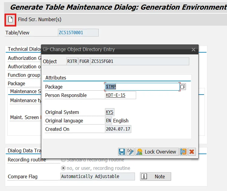 SE11Table maintenance generator 생성SE80Screen Painter에서 화면 수정SM30screen 확인 , 데이터 편집SE93T코드 생성