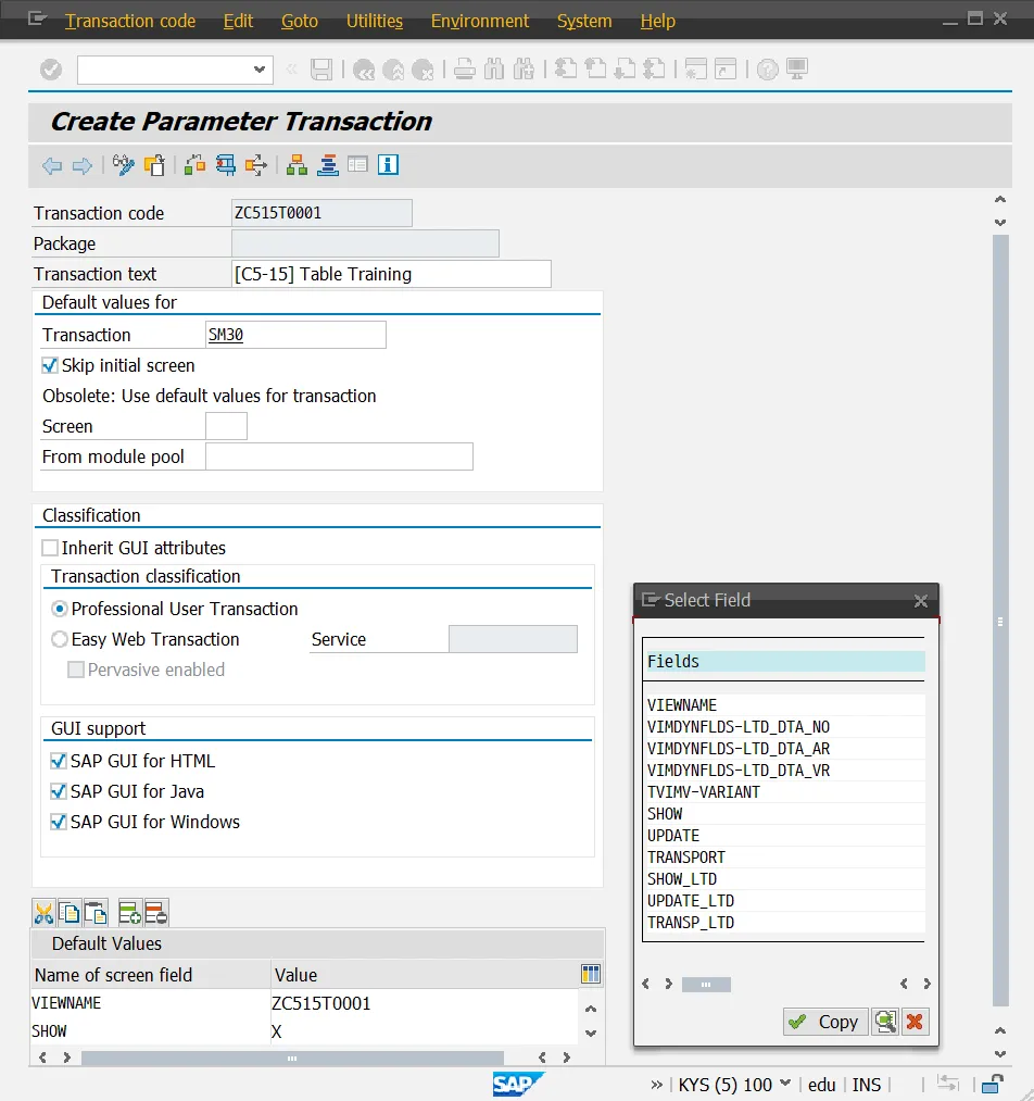 특정 입력값 sm30 통해서 가야하는 애들한테 필요한게 parameter transaction