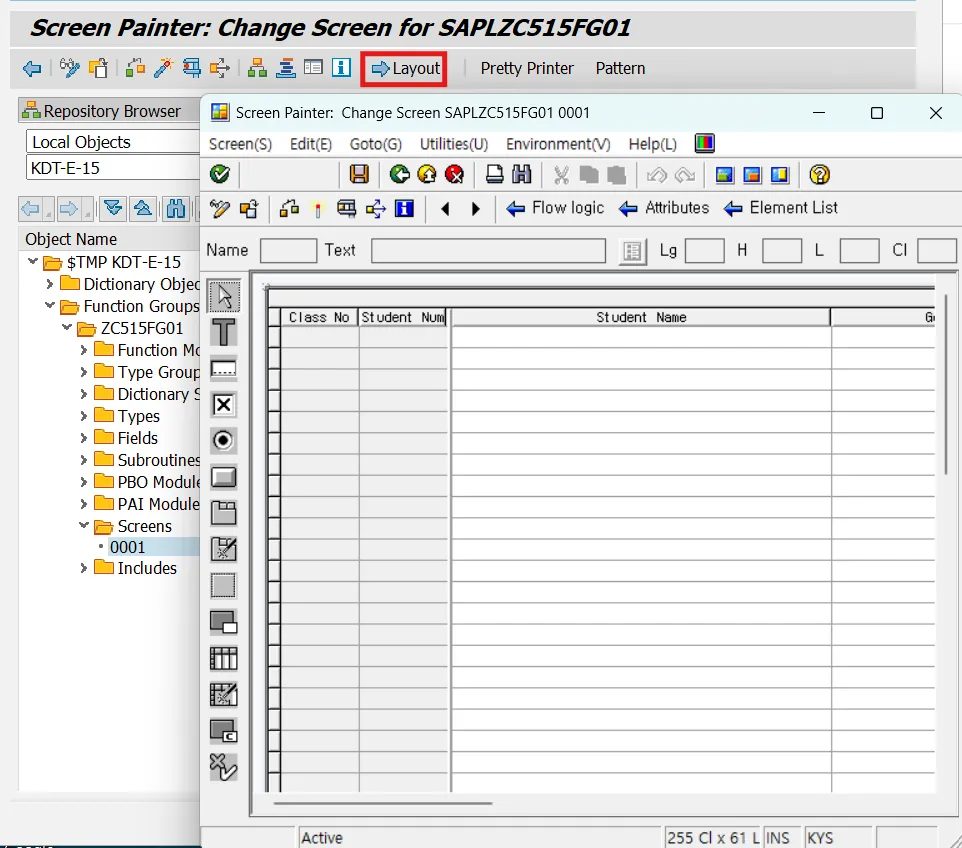 이렇게 Table Maintenance Dialog를 생성했다면 화면을 보기 좋게 수정해보자