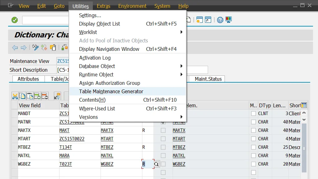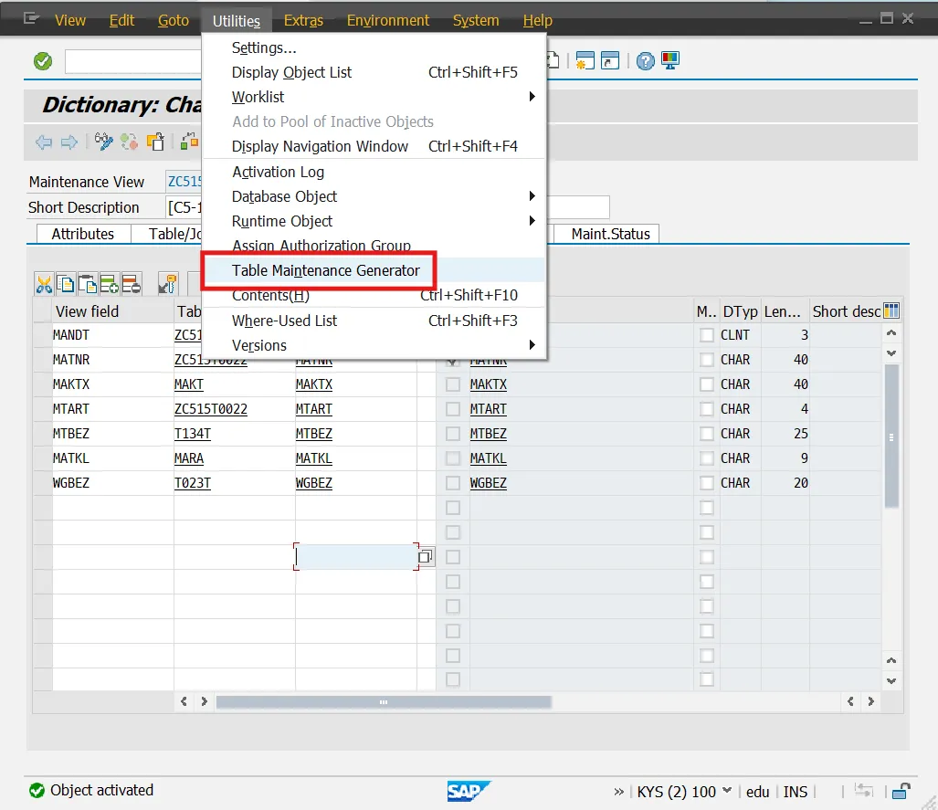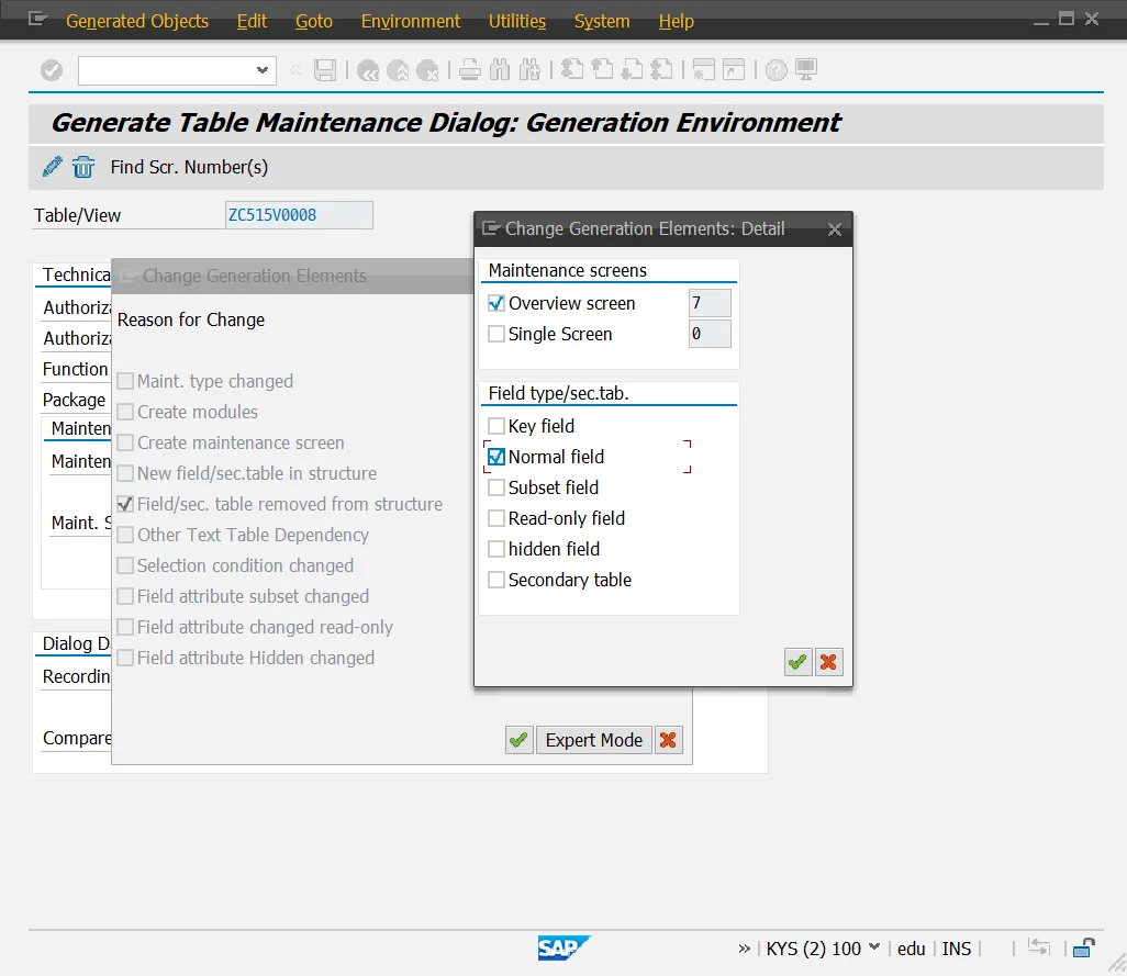 View가 변경되었다면 다시 화면 바꿔줘야함 → table maintenance generator