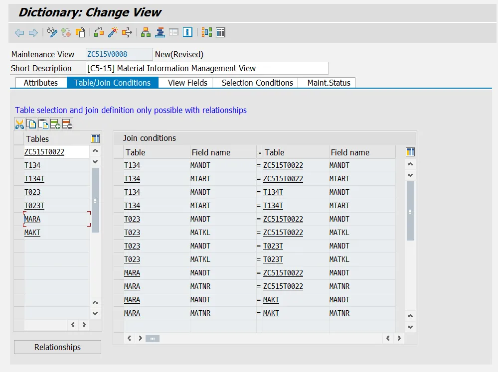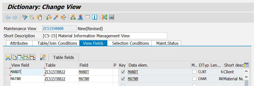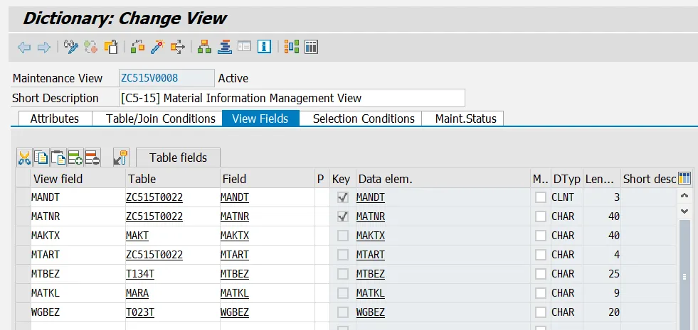 예를 들어, Material, Quan, Price만 저장할건데 Material의 Description도 함께 화면에 보여달라는 요청 들어왔을 때 maintenance view 를 사용한다