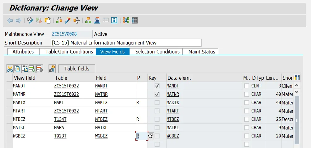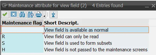 → View 편집 화면으로 돌아와서 Maintenance flag를 읽기전용인 R로 설정해주기