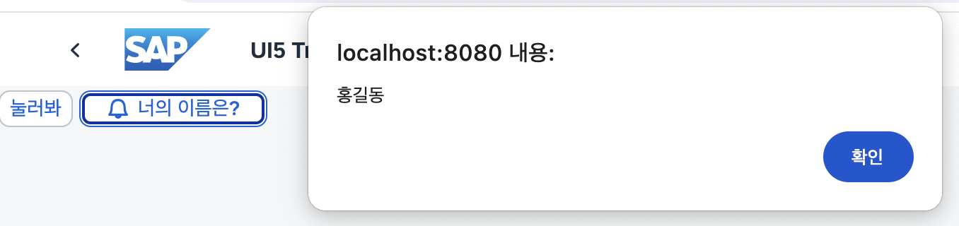 <Button text="너의 이름은?" icon="sap-icon://bell" press="onName" width="10em"/>