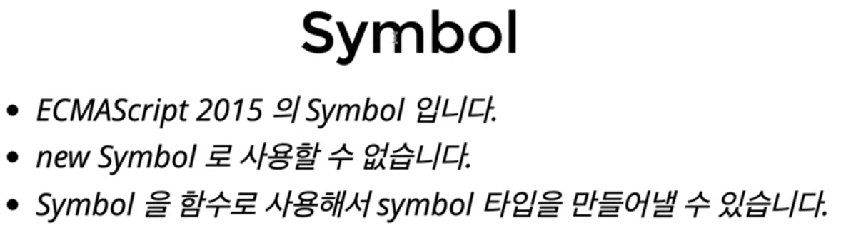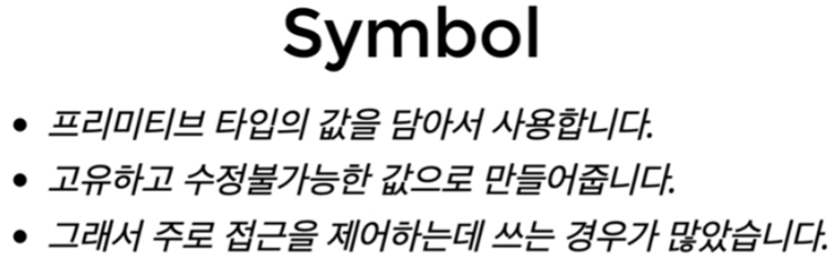 타입으로 사용할 때는 소문자(symbol) 심볼.