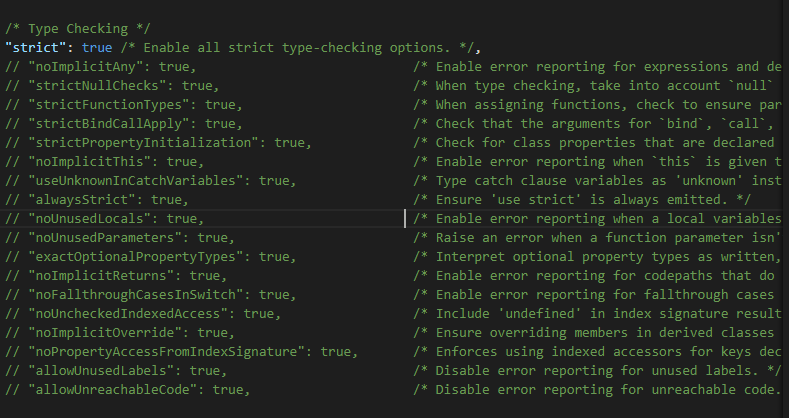 "strict": true 를 사용하면 그 아래 모든 하위 Type Checking과 관련된 옵션들을 전부 true로 사용하게 됩니다.--strictNullChecks 도 표함되어 있습니다.void에는 undefined를 할당할 수 있습니다. null은 할당할 수 없습니다. 의미적으로 void은 undefined와 비슷한 의미를 가지고 있습니다. 그래서 void에 undefined를 넣는 것은 의미적으로는 그렇게 잘못된 것은 아닙니다.