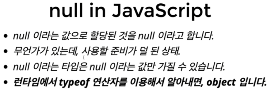 null값을 runtime에서 typeof 연산자를 이용해서 알아내면, object로 나옵니다.