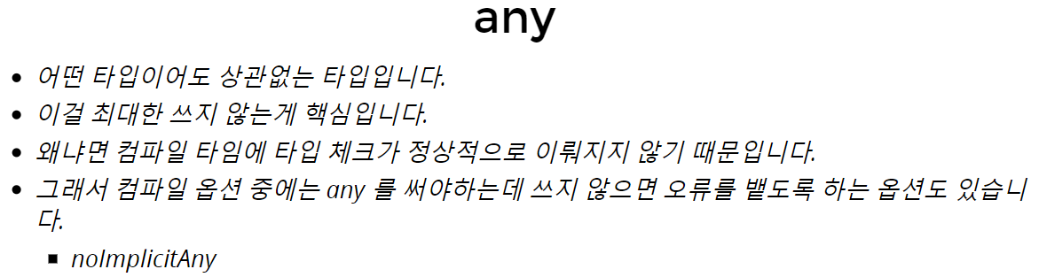 any 타입은 어떤 타입이여도 상관없는 타입.이렇게 모르는 상태 일 때,