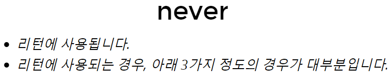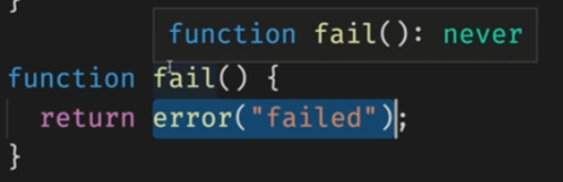 TypeScript는 never라고 추론합니다.// Function returning never must have unreachable end point