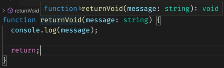 return을 작성하고 아무값도 반환하지 않는 경우에도 void로 추론합니다.function returnVoid(message: string): void {