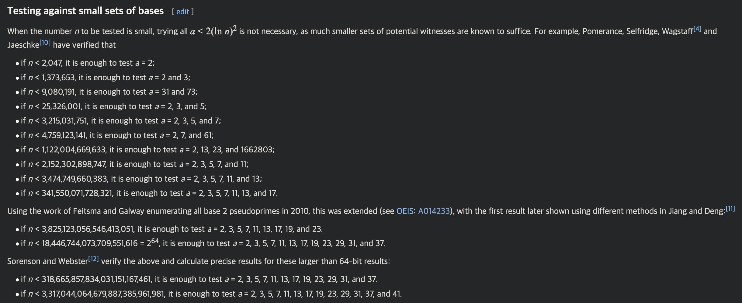 따라서 이 소수일 것을 단정짓기 위해 사진처럼 의 크기에 따라서 이 정도까지만 확인해보면 충분하다는 의 목록이 있다.