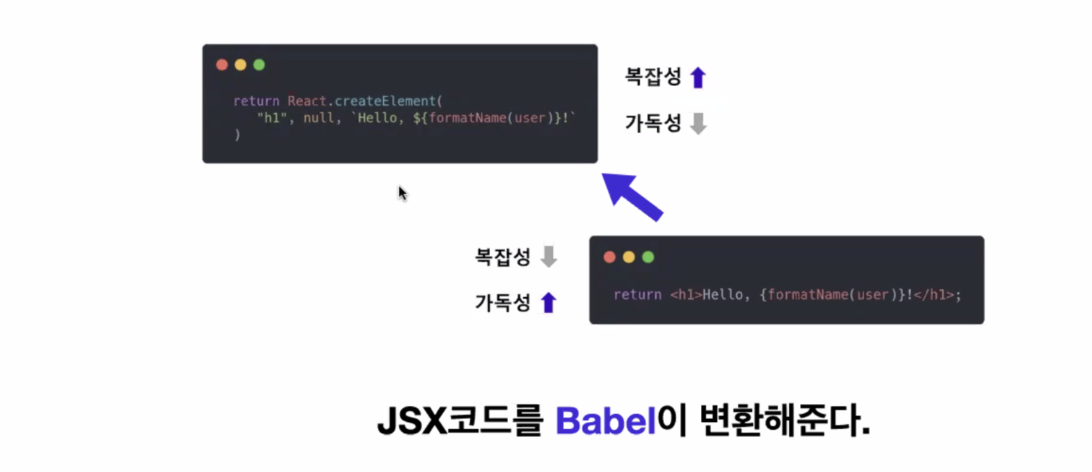 💡 JSX를 브라우저가 이해 가능하도록 컴파일 하기 위해서는 Bable이 필요하다.