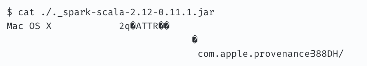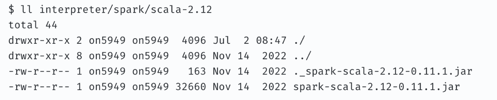 이상한 점은 실행하려고 하는 jar파일이 너무 사이즈가 작다는 점과 거의 비슷한 jar파일이 하나 더 있다는 것이었다.(zeppelin은 ._으로 시작하는 jar를 열려고 하였다.)