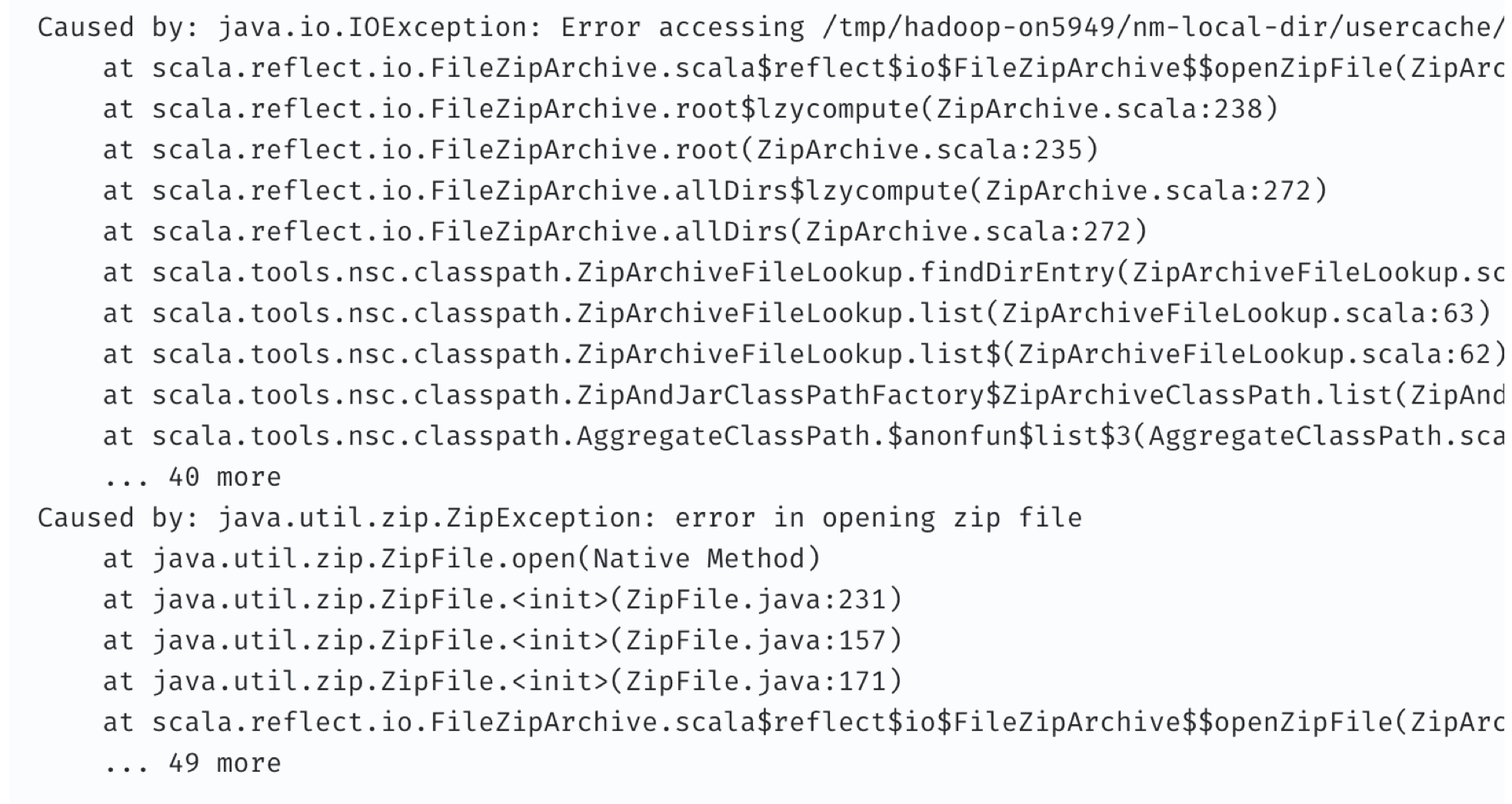 이 에러에서 jar 파일에 대한 압축 해제가 안된다는 것을 알 수 있었고, yarn 컨테이너에 직접 접근해서 파일을 확인 해 보았다.