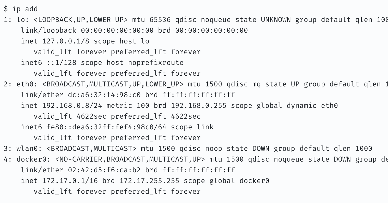 하지만 나의 인터페이스들 중 맨 마지막인 도커의 가상 네트워크 인터페이스 주소를 골라서 광고를 하는게 문제였다.