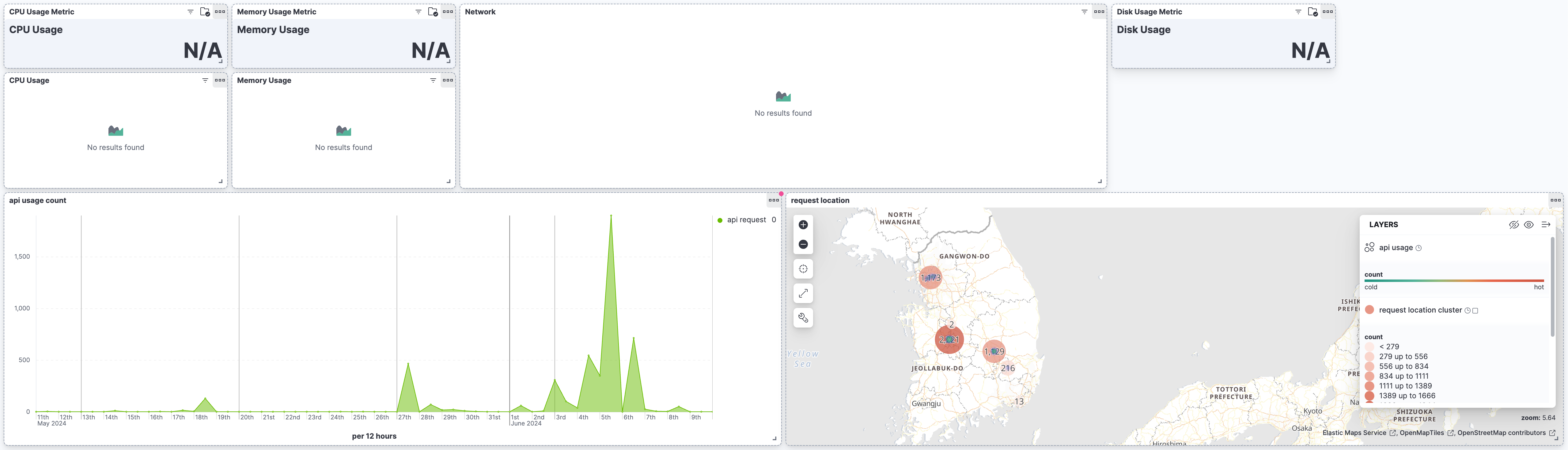 어쨌든 각 시간대별로 요청량이 얼마나 되는지, 그리고 어떤 위치에서 호출이 많이 이루어졌는지와 같은 정보를 시각화하였다.