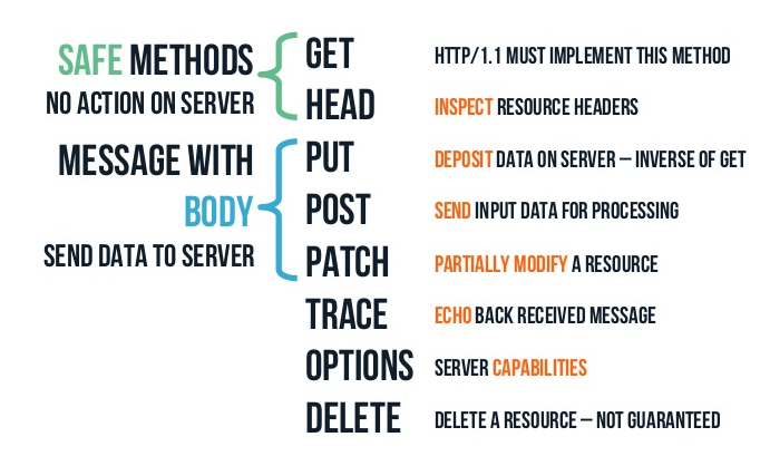 클라이언트와 웹 서버 간의 소통을 하기위해 사용되는 방법으로 리소스와 동작을 분리하기 위해 사용.