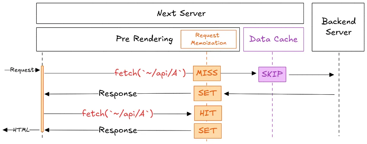 리퀘스트 메모이제이션은 같은 페이지를 렌더링하는 과정에서 여러 컴포넌트가 동일한 fetch 요청을 할 때, 실제 요청은 한 번만 수행하고 결과를 공유하게 해준다. 이를 통해 동일한 API 요청이 한 번의 서버 렌더링 주기 내에서 중복되는 것을 방지한다.