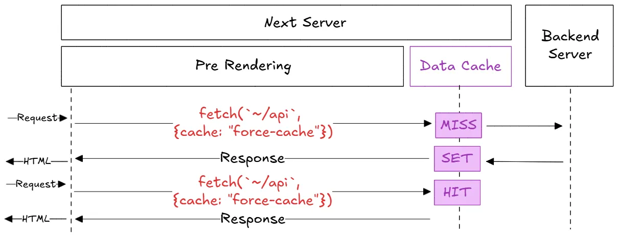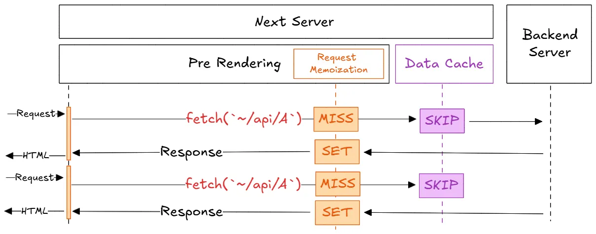 데이터 캐시는 서버 다운 전까지 지속되지만, 리퀘스트 메모이제이션은 한 번의 서버 렌더링 주기 후에 초기화된다.