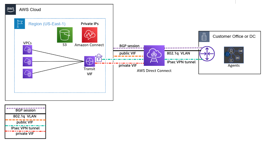 Direct Connect(DX)는 고객의 온프레미스 데이터 센터와 AWS 네트워크 간에 물리적 전용 연결을 제공하는 서비스이다. 이 중 Public VIF를 사용하면 S3와 같은 AWS 퍼블릭 서비스로 향하는 트래픽을 일반 인터넷이 아닌 전용선을 통해 라우팅할 수 있다.