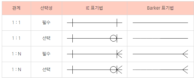 실선은 부모 테이블의 기본키를 자식 테이블이 가지고 있으며 이를 기본키로 사용하는 경우(식별 관계) 이고, 점선은 부모 테이블의 기본키를 자식테이블이 가지고 있지만 이를 기본키로 사용하지 않는 경우(비식별 관계) 이다.
