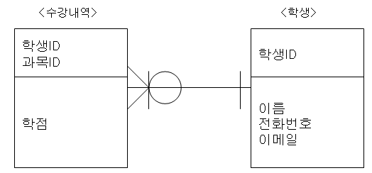 수강내역 입장에서는 0~N개의 수강내역은 하나의 학생에게 포함되어 진다 라는 해석이 가능하다.