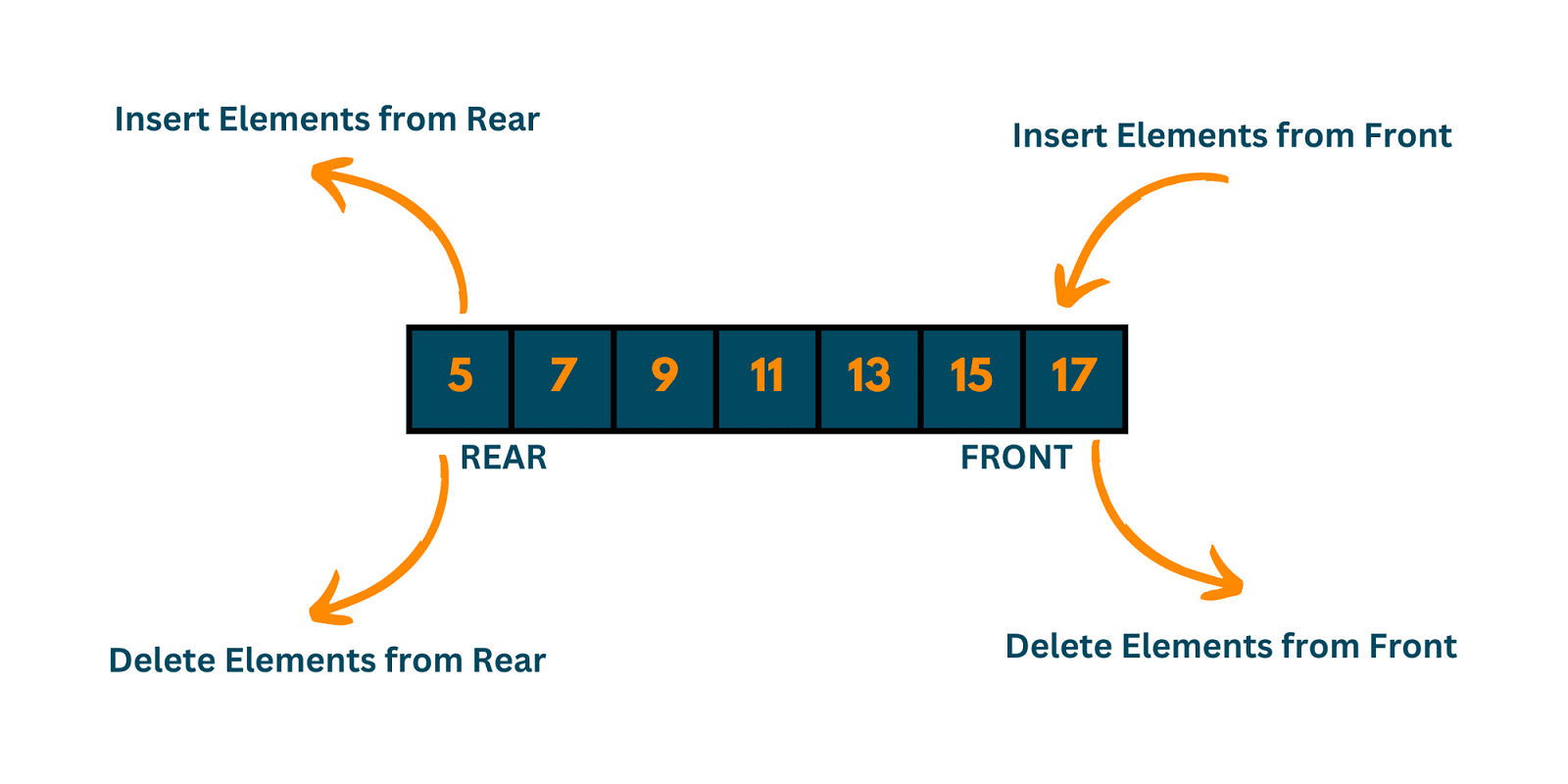 Deque는 양쪽 끝에서 삽입 및 삭제 작업을 수행할 수 있는 자료구조이다.