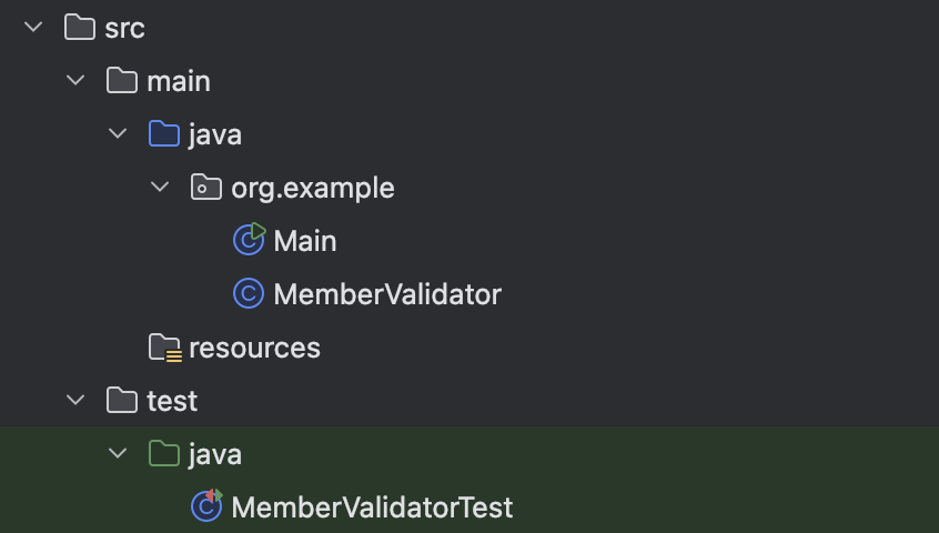 test/java 밑에 넣기)import org.example.MemberValidator;
