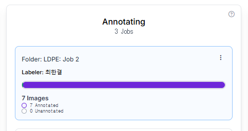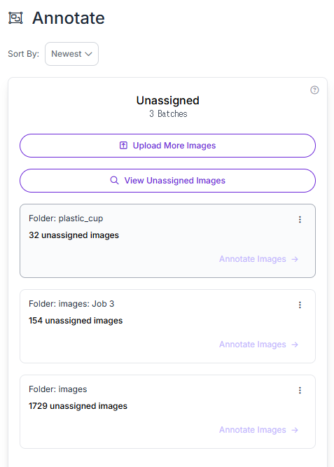 이렇게 업로드를 해주고 나면 왼쪽 Annotated 메뉴에 Unassigned에 방금 업로드된 폴더, 파일이 들어와있음을 확인할 수 있다.