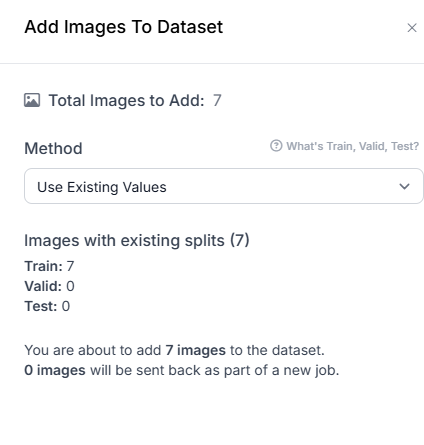 버튼을 눌러주면 이렇게 Train, Valid, Test 중 어디로 넣을 건지 알려주는데, 나는 Train 폴더로 넣어주었다.