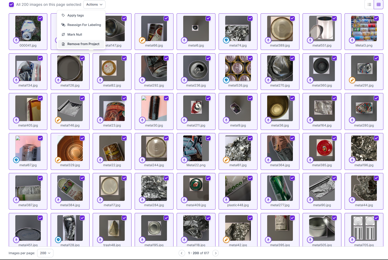 먼저 roboflow universe에서 원하는 프로젝트를 받아서 내가 필요한 데이터들만 뽑아온다. 나의 경우에는 PLASTIC, CAN, PAPER 데이터만 필요했기에 클래스 명이 다른것들은 수정하고 필요없는 데이터들은 삭제한 후에 데이터를 다운받아줬다.