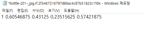 이런 식으로 적혀있는데 맨 앞에 1이라고 적힌 것이 class_id인 것이다. 나는 각각 플라스틱 데이터를 1번으로 바꾸고, 캔 데이터를 5번, 종이 데이터를 4번으로 바꿔줘야 했다.