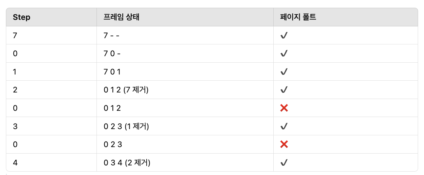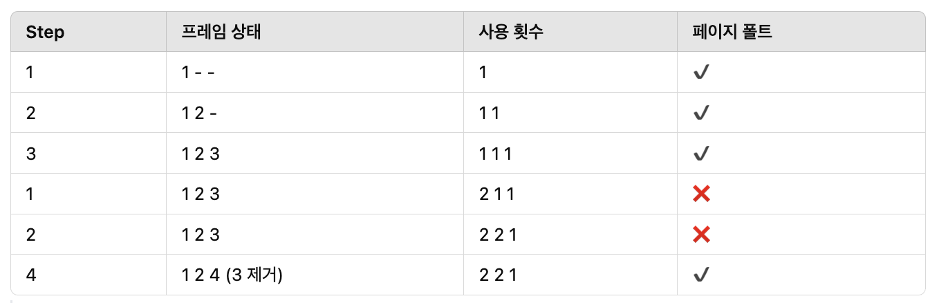 페이지 교체에 직접 사용되진 않지만 프로세스 스케줄링에서 사용된다.