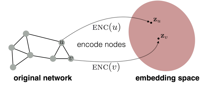 - 그래프의 노드(Vertices)를 저차원의 벡터로 표현하는 과정