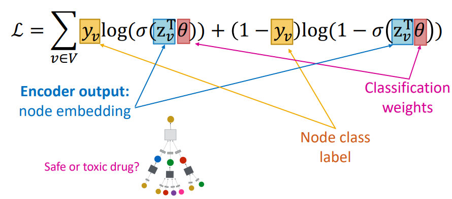 GNN에서 결과물로 나온 , 임베딩 벡터를 학습하기 위해서는 손실함수를 정의하고 최적화를 진행해야 한다. 학습과정은 Supervised, Unsupervised 모두 사용가능하다.