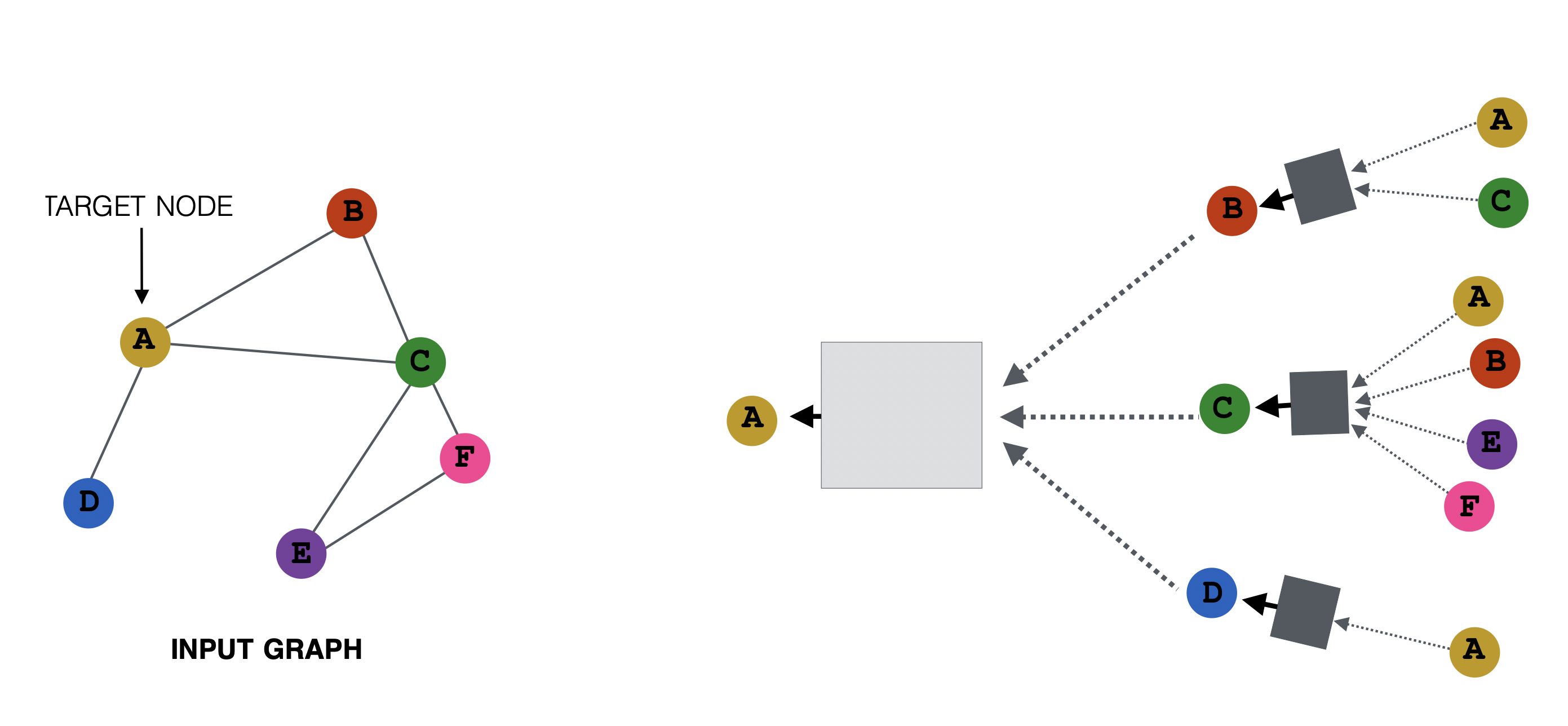 해당 모델의 기본 아이디어는 노드의 이웃이 연산 그래프를 정의하는 것이다.