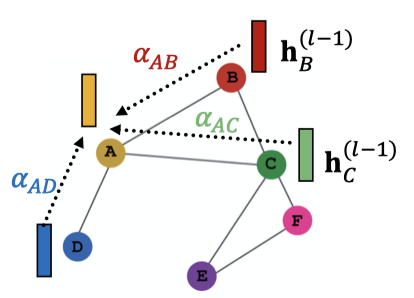 이렇게 정의된다면, 이웃 노드가 모두 동등하게 중요하게 여겨지게 된다. 단, 당연하지만, 모든 이웃 노드는 같은 중요도를 가지지 않는다. 어텐션을 활용하면 입력 데이터의 중요한 부분에 초점을 맞추고, 나머지는 거의 무시하게 된다. 데이터에서 어떤 부분이 더 중요한지는 상황에 따라 다르고, 학습을 통해 알 수 있다.