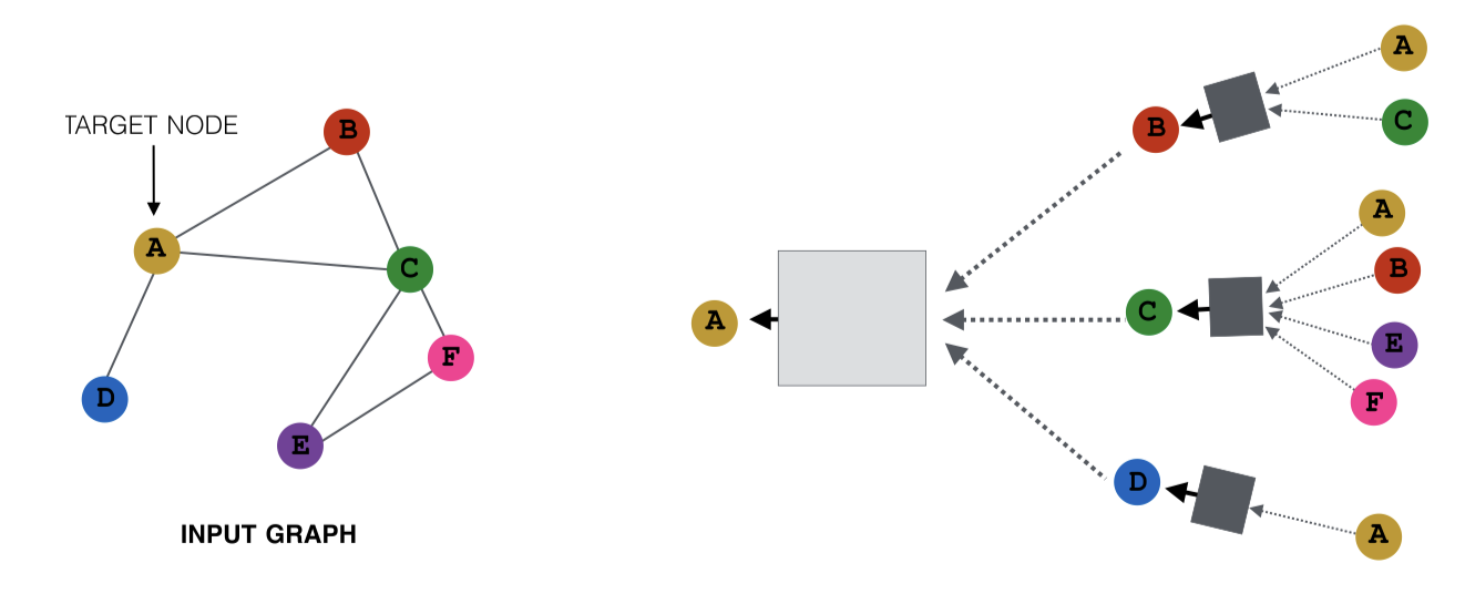 이 방식은 GNN 모델에에서 target node가 v인데 은 1-hop거리 이웃한테만 메시지를 받은 것이고, 은 2-hop, 3-hop까지 받은 정보이다.