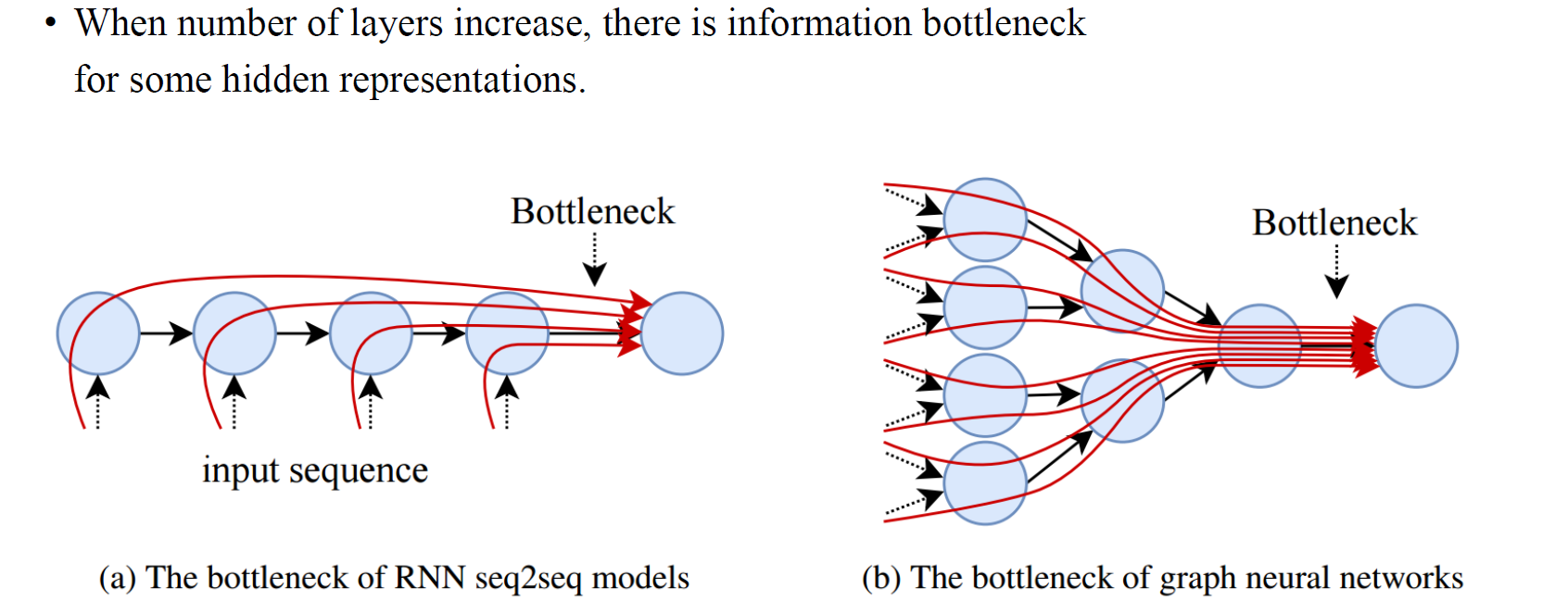즉, 정보 수용에 대한 shortest path가 증가하는 것이다. 이로 인해, target node에 대한 정보가 희석되어 결국은 모든 노드 임베딩이 같은 값으로 수렴하게 된다.