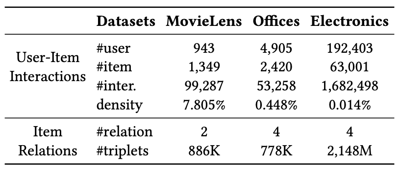 또한 아이템 vi∈V는 relation r을 통해 다른 아이템 v−i와 연관될 수 있고, 이는 Triplet(삼중항) (vi,v−i,r)로 나타냅니다.