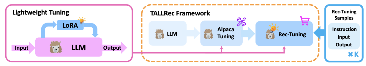 TALLRec을 말하면, 추천 시스템을 위한 작업에 특화되게, 효과적이고 효율적으로 조정하는 튜닝 프레임워크입니다.
